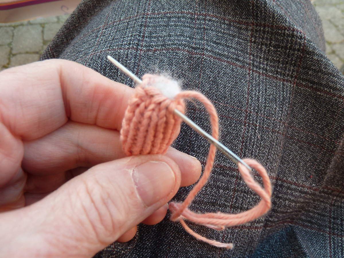 Retourner, passer votre élastique (25 à 30 cm) à l'aide d'une épingle de sureté, adaptez et faire un nœud. A l'intérieur mettre le filtre.